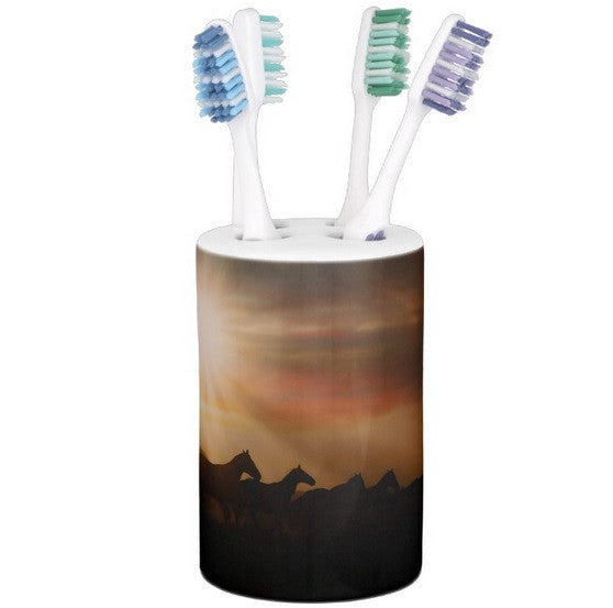 Show off your love of horses while adding a little color and fun to your daily bath routine. Made with ceramic, this two-piece bathroom set can be personalized with your photos, text, and designs to match your style or personality. Photography by Amanda Smith Wyoming Western Art Photographer and Photographic Artist.